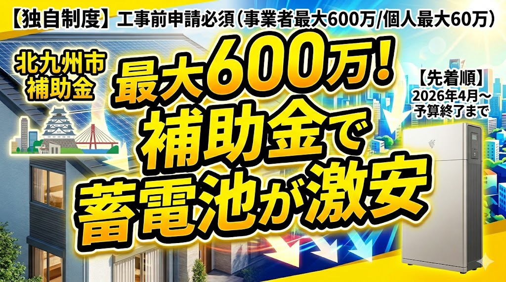 北九州市の2026年度蓄電池補助金は、**「事業者には手厚い独自補助」「個人には国のDR補助金」**という、目的の明確な支援構造になっています。