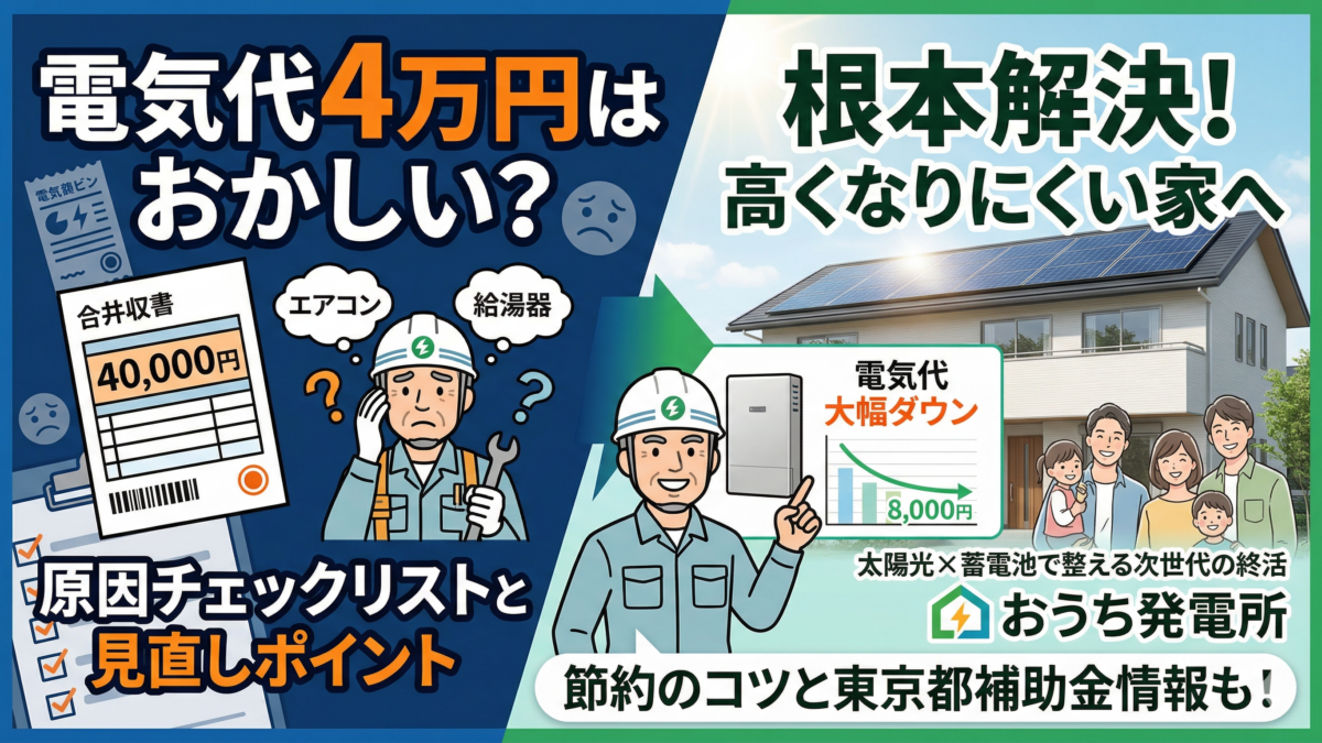 もちろん家の広さ、家族の人数、オール電化かどうかで差は出ますが、都内の一般的な戸建て家庭で毎月4万円が続くなら、私はまず「使いすぎ」ではなく原因の切り分けが必要だと考えます。