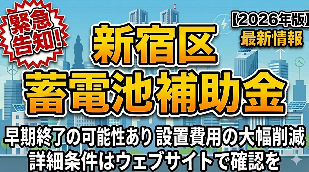 結論:新宿区の蓄電池補助金は現時点では詳細未発表だが、前年度実績では1kWhあたり10,000円・上限100,000円。申請は工事・支払い完了後の事後申請。