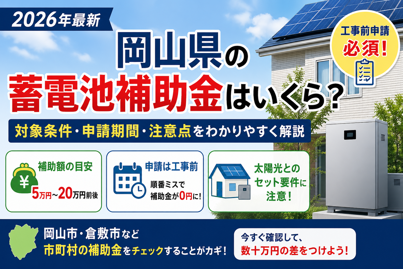 結論:岡山県の蓄電池補助金は「県で探すと負け」。自分の市町村を特定し、工事前申請で枠を確保できた人だけが得をする。