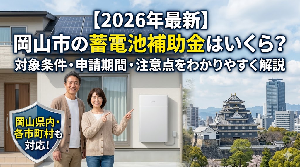岡山市では2026年度も「住宅用スマートエネルギー導入促進補助事業」により、太陽光発電と蓄電池の同時導入を強力に支援しています。他自治体と異なり事前申請不要の代わりに、工事後のスピード対応が受給のカギとなります。