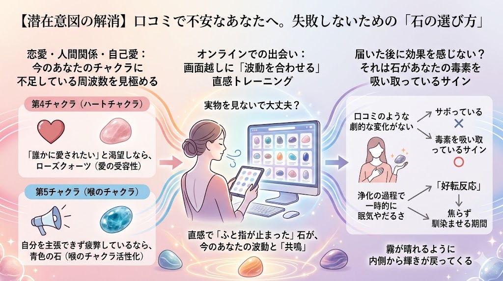 ネット上の口コミに一喜一憂してしまうのは、あなたがそれだけ「本物」を求めている証。波動医学の観点から見れば、私たちが惹かれる石は、私たちの魂が発している「助けて」「もっと輝きたい」という微かなサインに共鳴したものです。